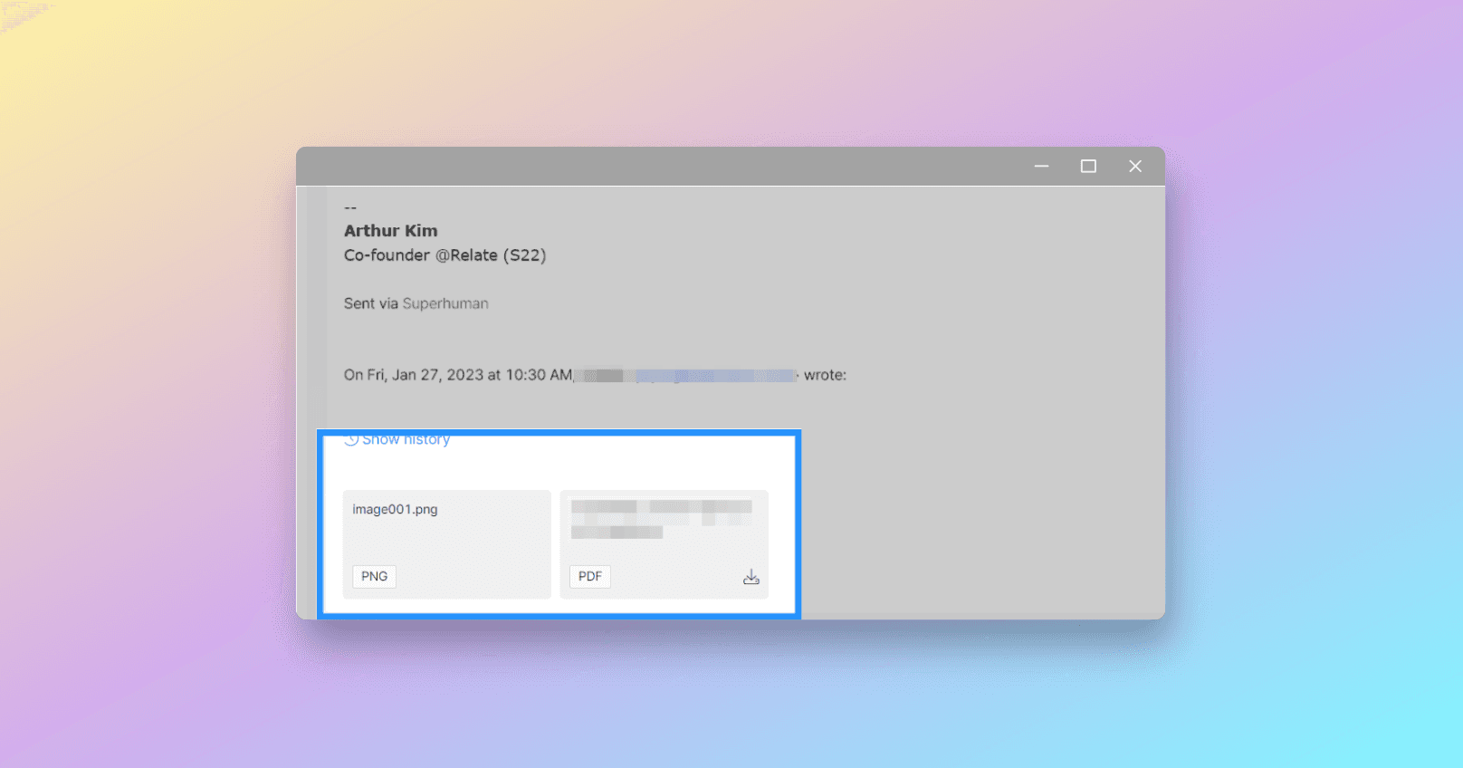 이제 Relate에 들어오는 이메일의 첨부파일을 다운로드 하실 수 있습니다. 이메일에 첨부파일이 존재하는 경우 위 스크린샷처럼 보이게 됩니다. 다운로드 버튼을 누르시면 로컬에 파일을 다운로드하실 수 있습니다.