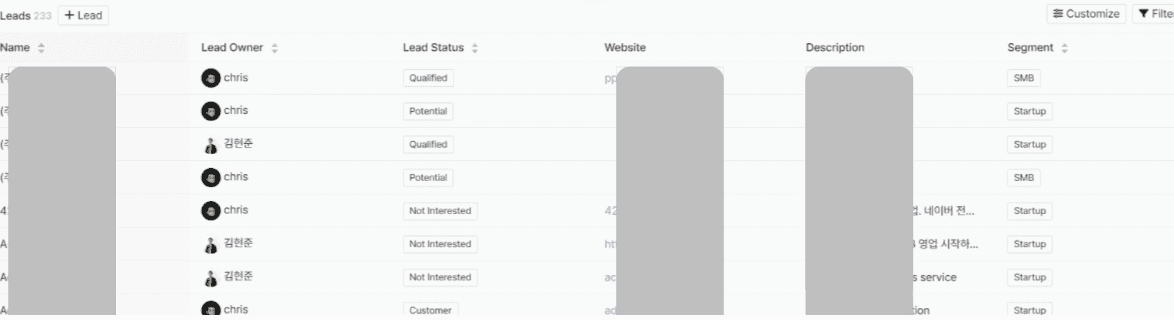 Lead Status를 통해서는 해당 Lead 고객사가 Deal Pipeline의 첫 단계로 입성하기까지의 단계를 관리하시면 좋습니다.