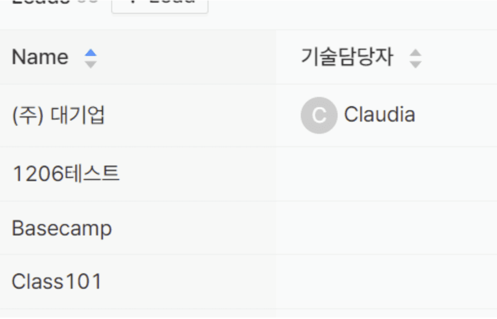 Lead 리스트에서 담당자 표시할 수 있습니다.