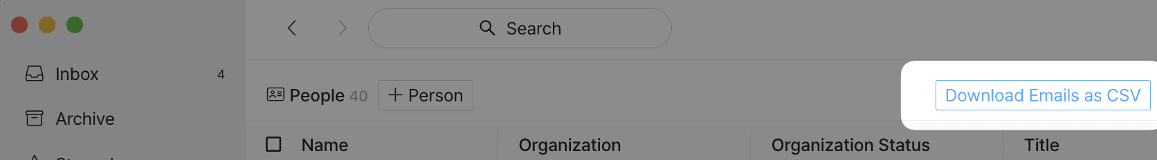 이제 Relate 팀에게 별도로 요청하실 필요 없이 필요하실 때마다 컨택을 .csv 파일로 익스포트할 수 있습니다.
