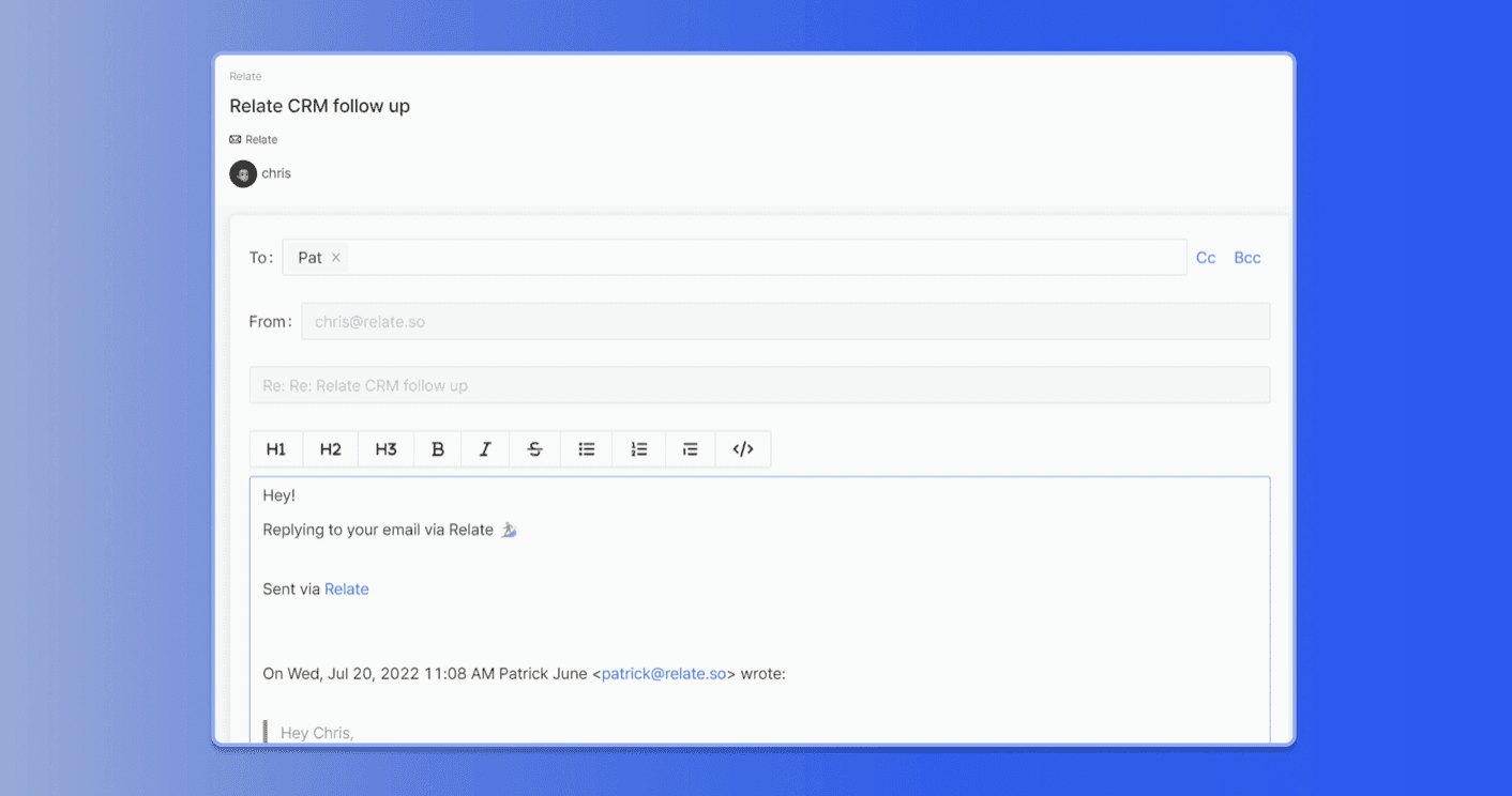 이제 Relate에서도 이메일을 발송하거나 답장 및 포워드 할 수 있습니다.