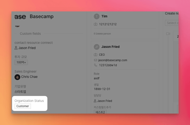 이렇게 Organization Status를 보면서 영업 담당자들은 해당 조직과 우리 팀의 관계를 빠르게 이해하고 어떤 일을 해야 할지 결정할 수 있습니다.