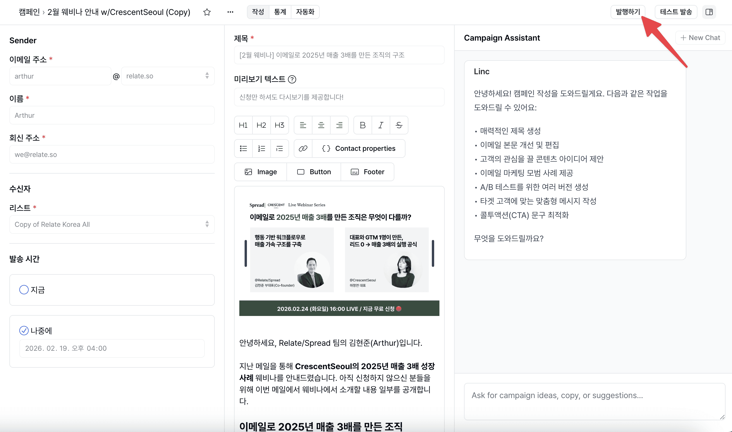 이제 Spread에서 발송한 캠페인/자동화 캠페인을 웹 링크로 만들어 공유할 수 있습니다. 이메일을 받은 사람이 아니라도, 링크만으로 동일한 내용을 웹에서 확인할 수 있습니다.