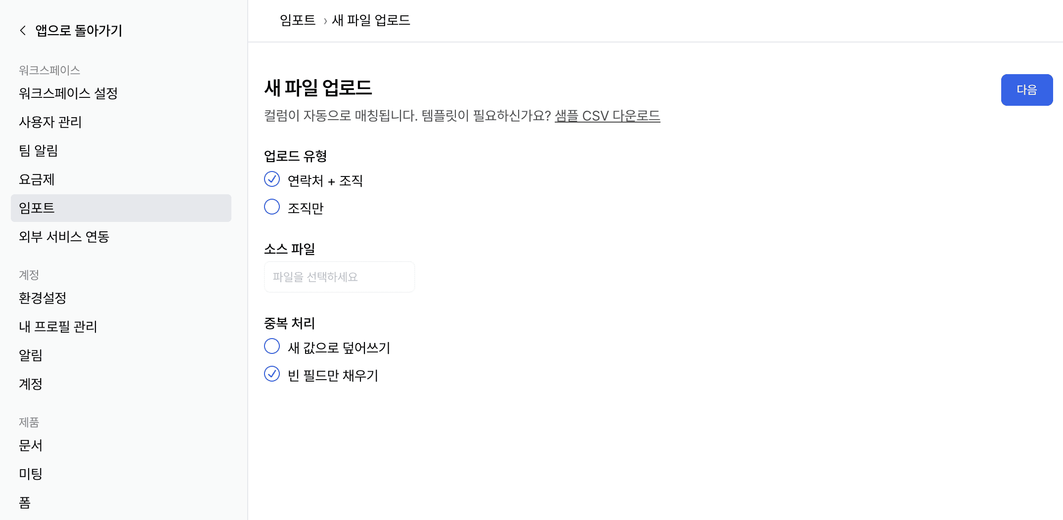 또한 연락처와 조직을 함께 가져오거나, 조직만 선택하여 임포트할 수 있으며, 중복 처리 옵션 설정과 리스트·프로세스 엔트리 임포트도 함께 지원합니다. 이를 통해 보다 빠르고 정확한 데이터 이전이 가능합니다.