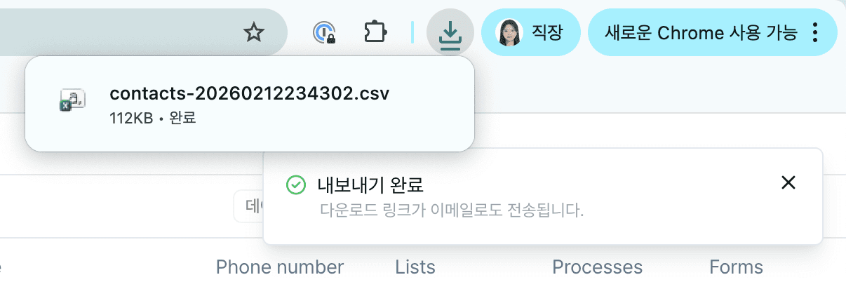 Relate/Spread에 저장된 데이터를 CSV 파일로 내보낼 수 있습니다. 이제 연락처, 조직, 프로세스, 리스트 모두 내보내기를 지원합니다.