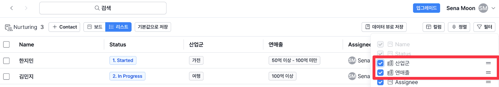 이제 연락처(Contact) type의 리스트(List) 또는 프로세스(Process)에서도 연결된 조직(Organization)의 Custom Field 값을 확인할 수 있습니다.