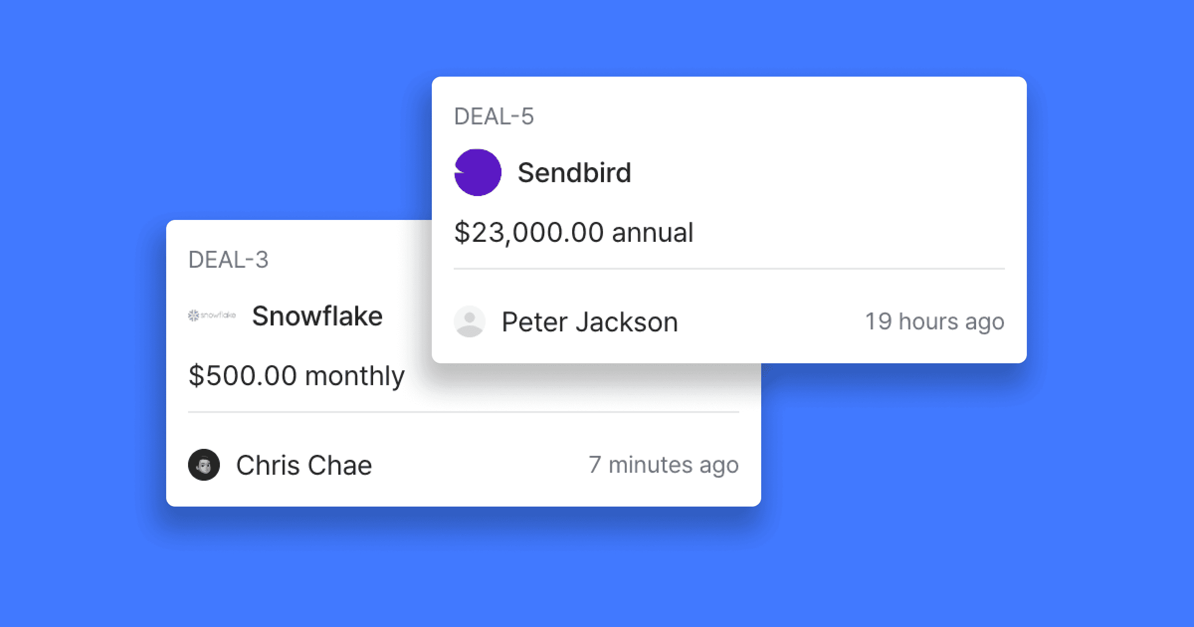 각 Deal 카드에는 고객사를 빨리 파악할 수 있도록 (자동 생성) 로고 이미지를 추가했고, Deal에 대한 논의를 할 때 명확한 커뮤니케이션에 사용될 수 있도록 고유 번호 ()를 추가했습니다.