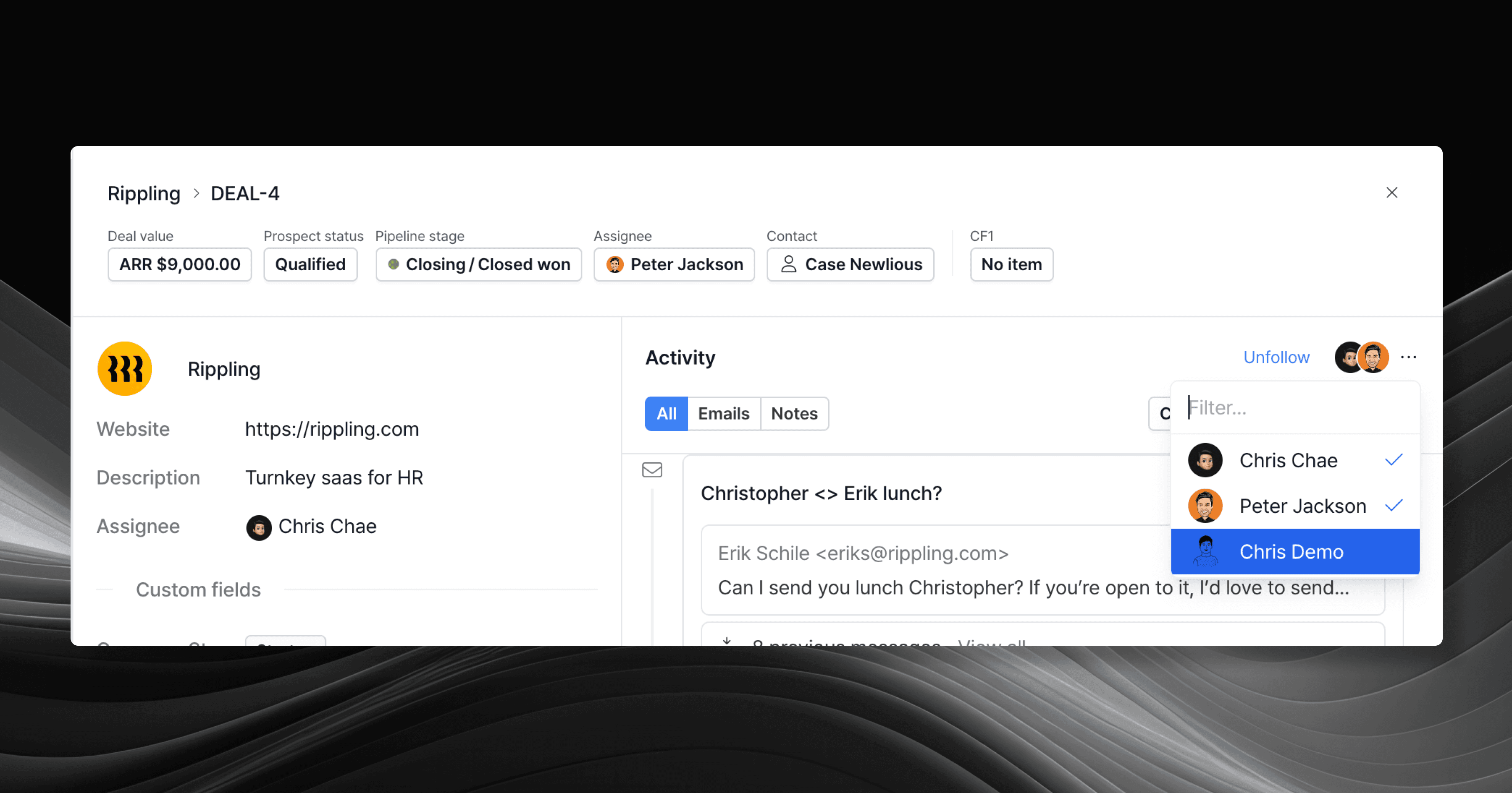 Organization이나 Deal의 담당자(Assignee)로 지정된다.