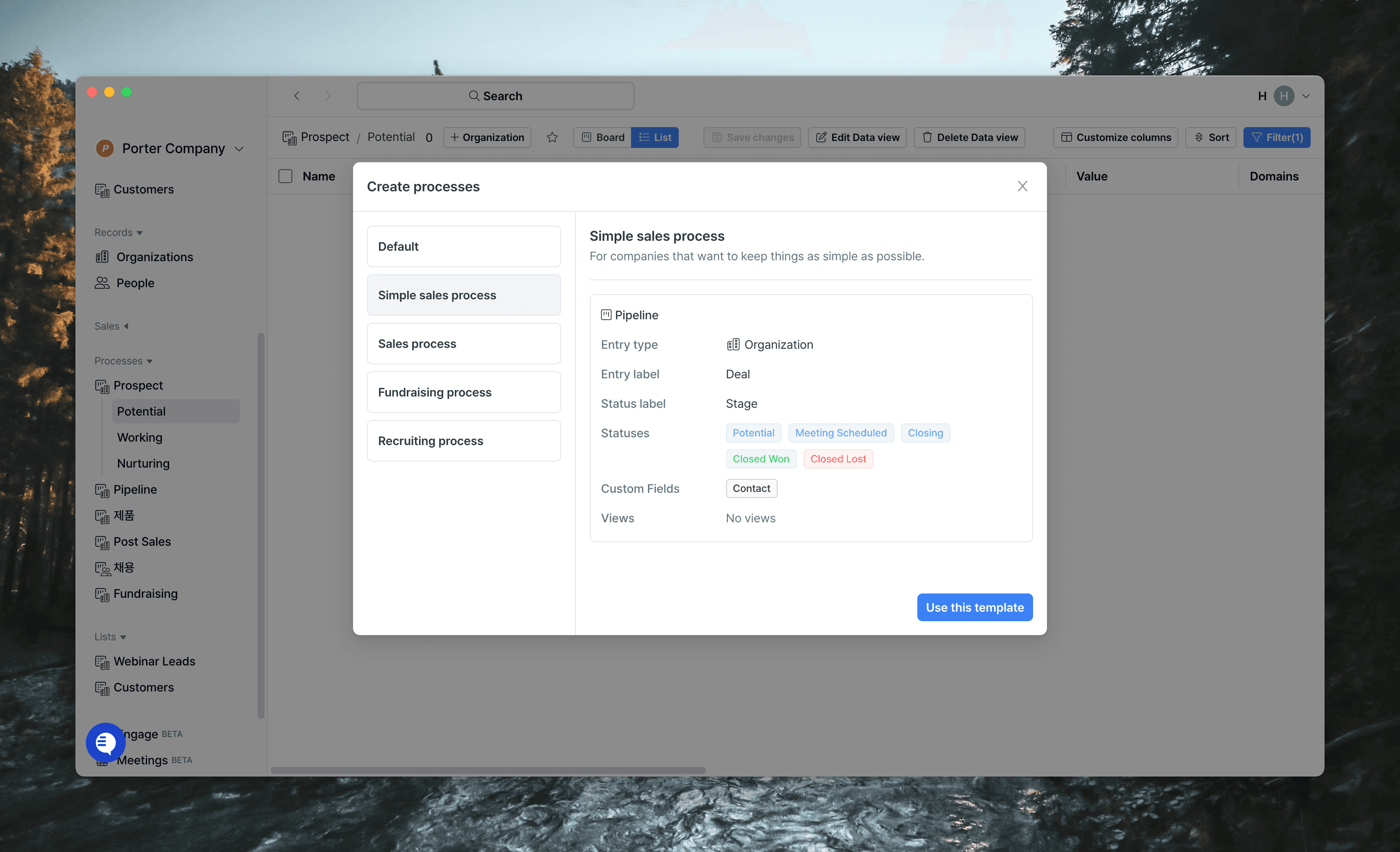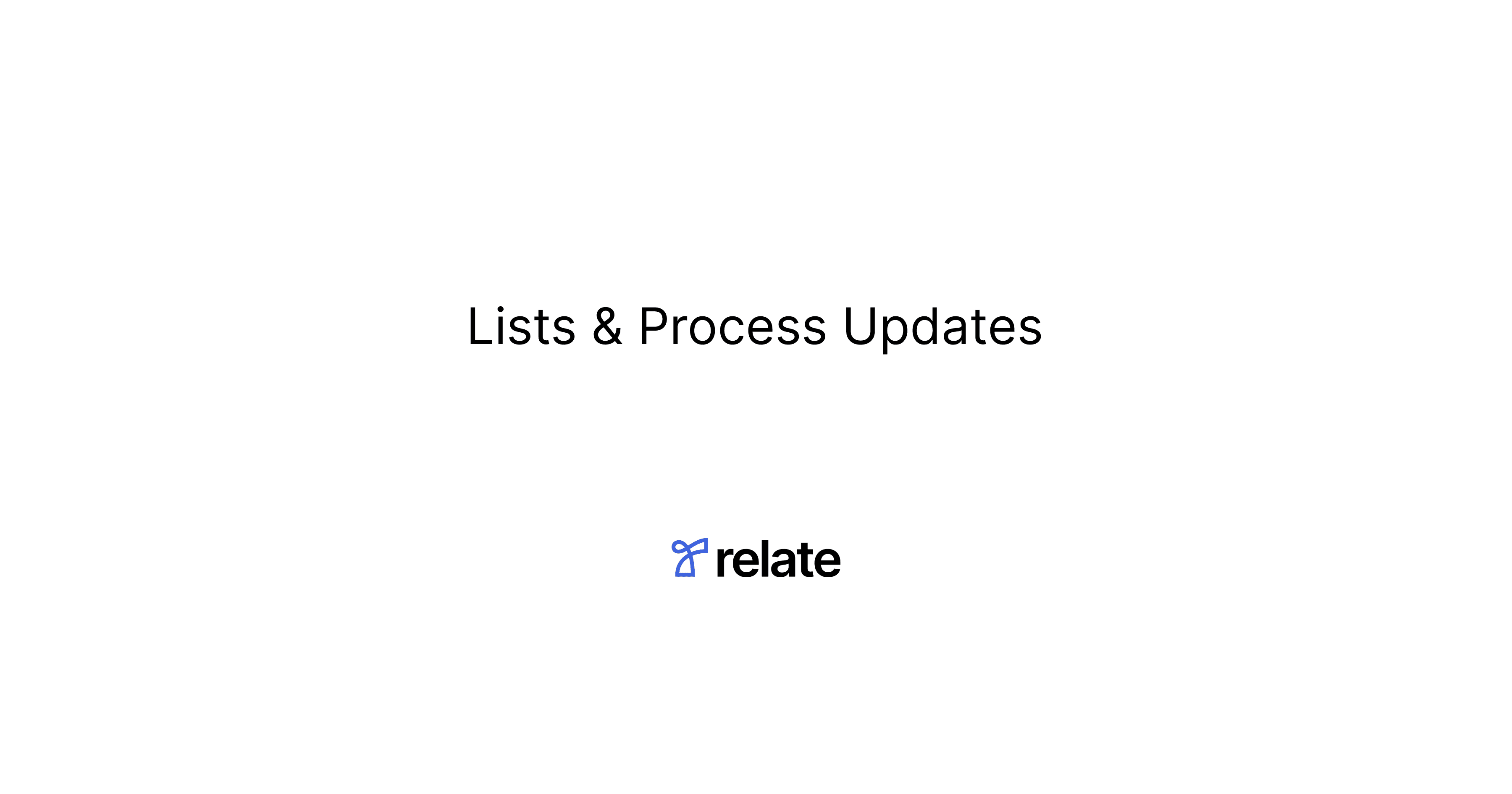 이제 파이프라인 (Pipeline), 프로스펙팅 (Prospecting) 뿐만 아니라 다양한 리스트와 프로세스를 Relate에서 관리할 수 있습니다. 또한, 템플릿을 통해 더욱 편리하고 빠르게 리스트와 프로세스를 만들 수 있습니다.