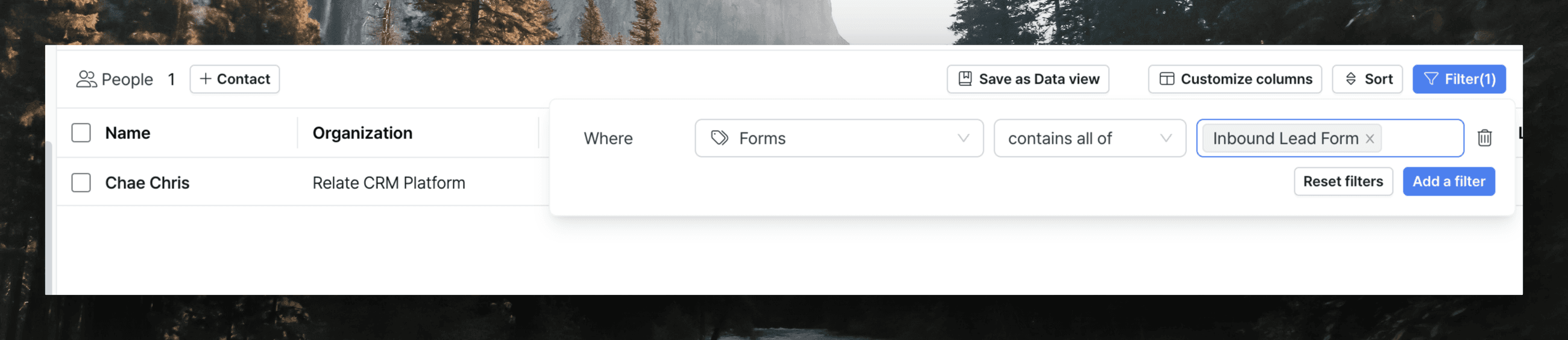 Relate Form을 통해 생성된 Organization/Contact 확인 및 필터 추가