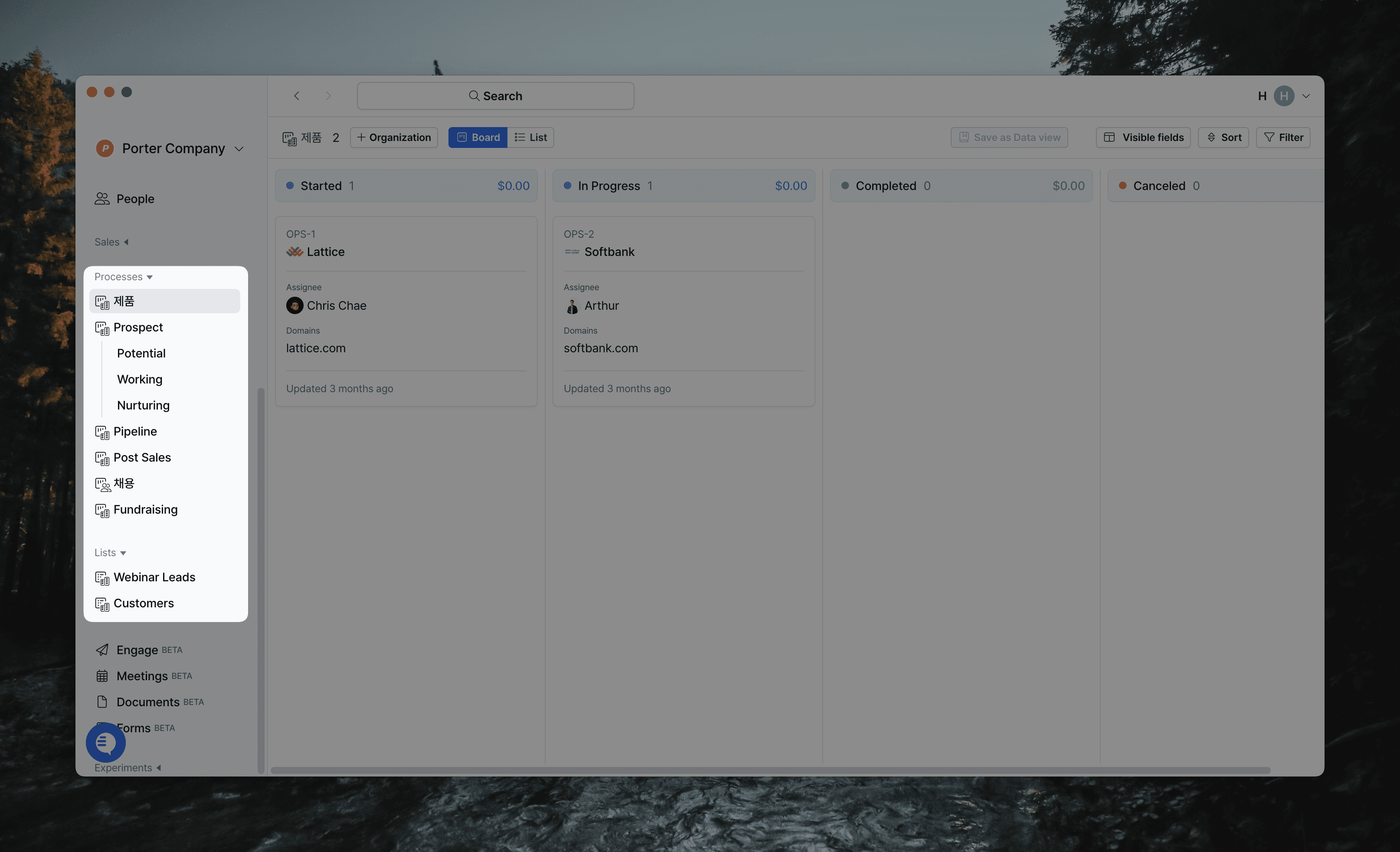 Organizations/People 페이지뿐만 아니라, List와 Process에서도 Forms 필터를 적용할 수 있습니다. 또한, 뷰로 만들어 즐겨찾기에 저장하여 확인할 수 있습니다.