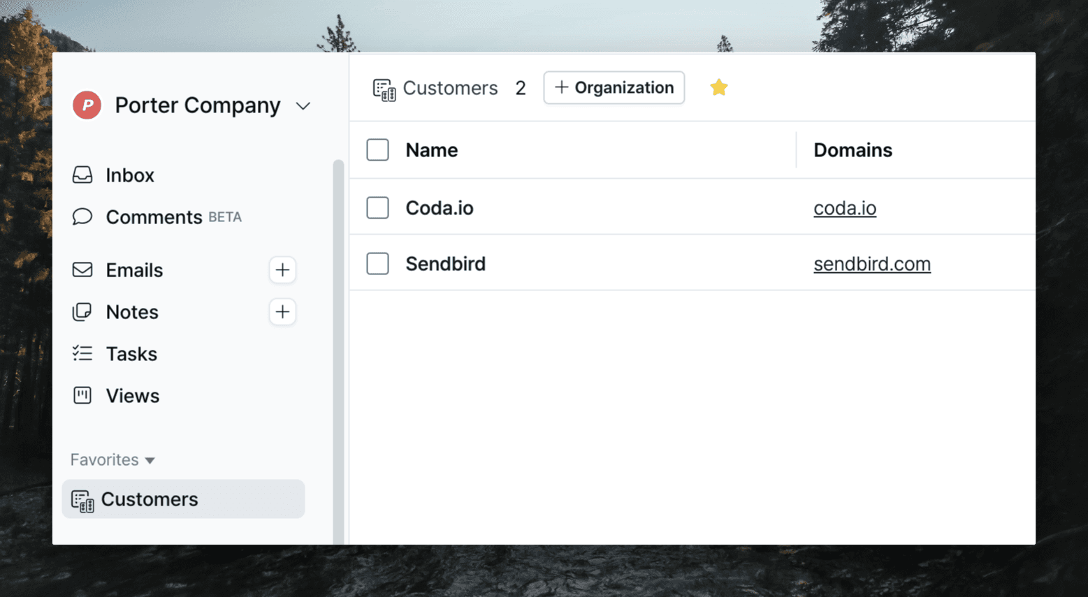 Organization, contact, deal, document, data view 등을 즐겨찾기 할 수 있습니다.