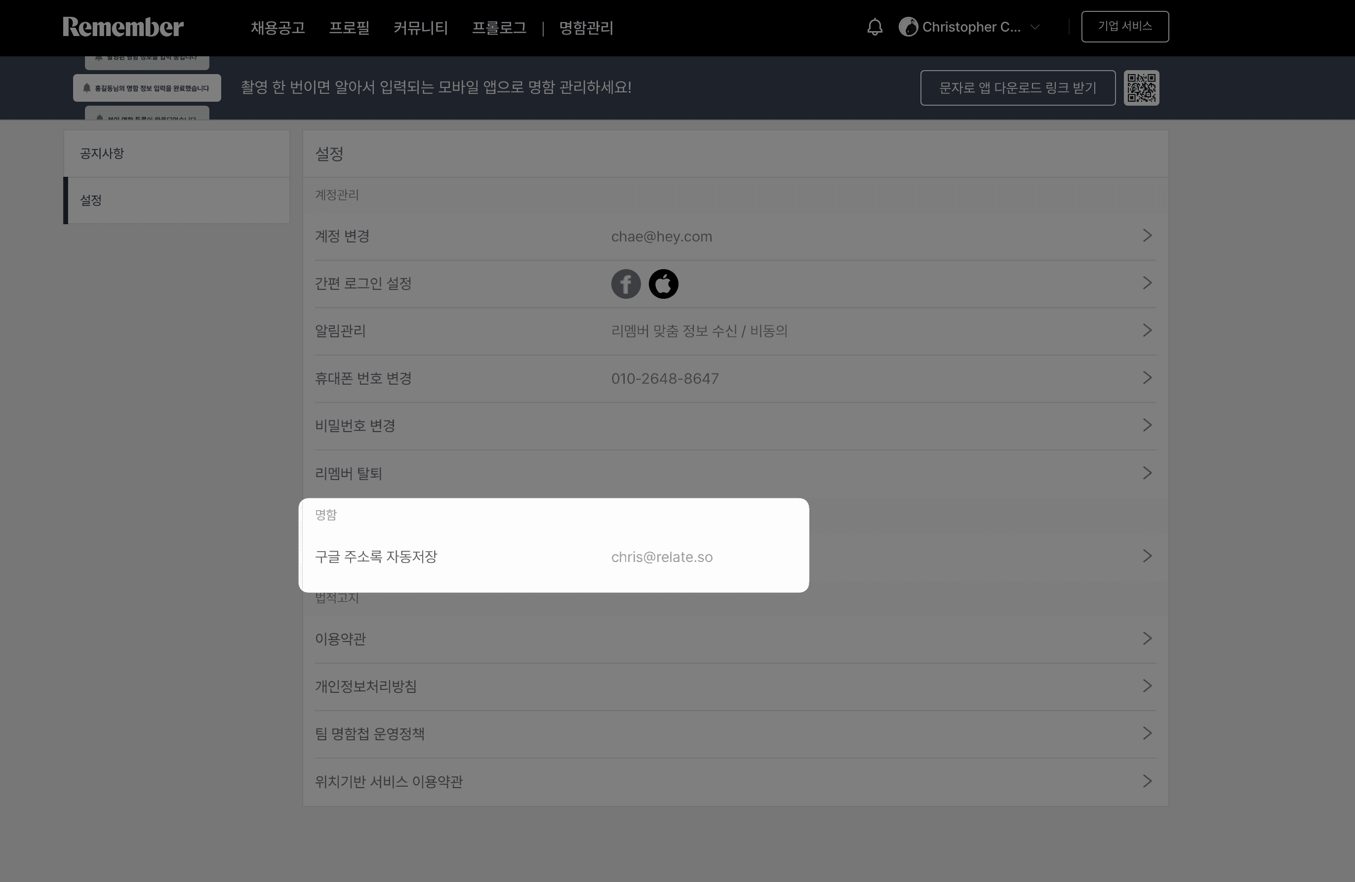 두 가지를 모두 수행하면 리멤버 연동이 완료됩니다.