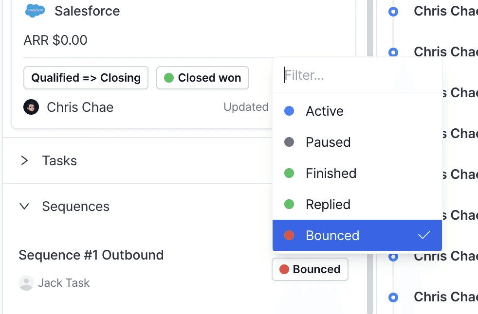 이제 연락처 리스트와 조직 페이지에서 시퀀스 상태를 볼 수 있습니다.