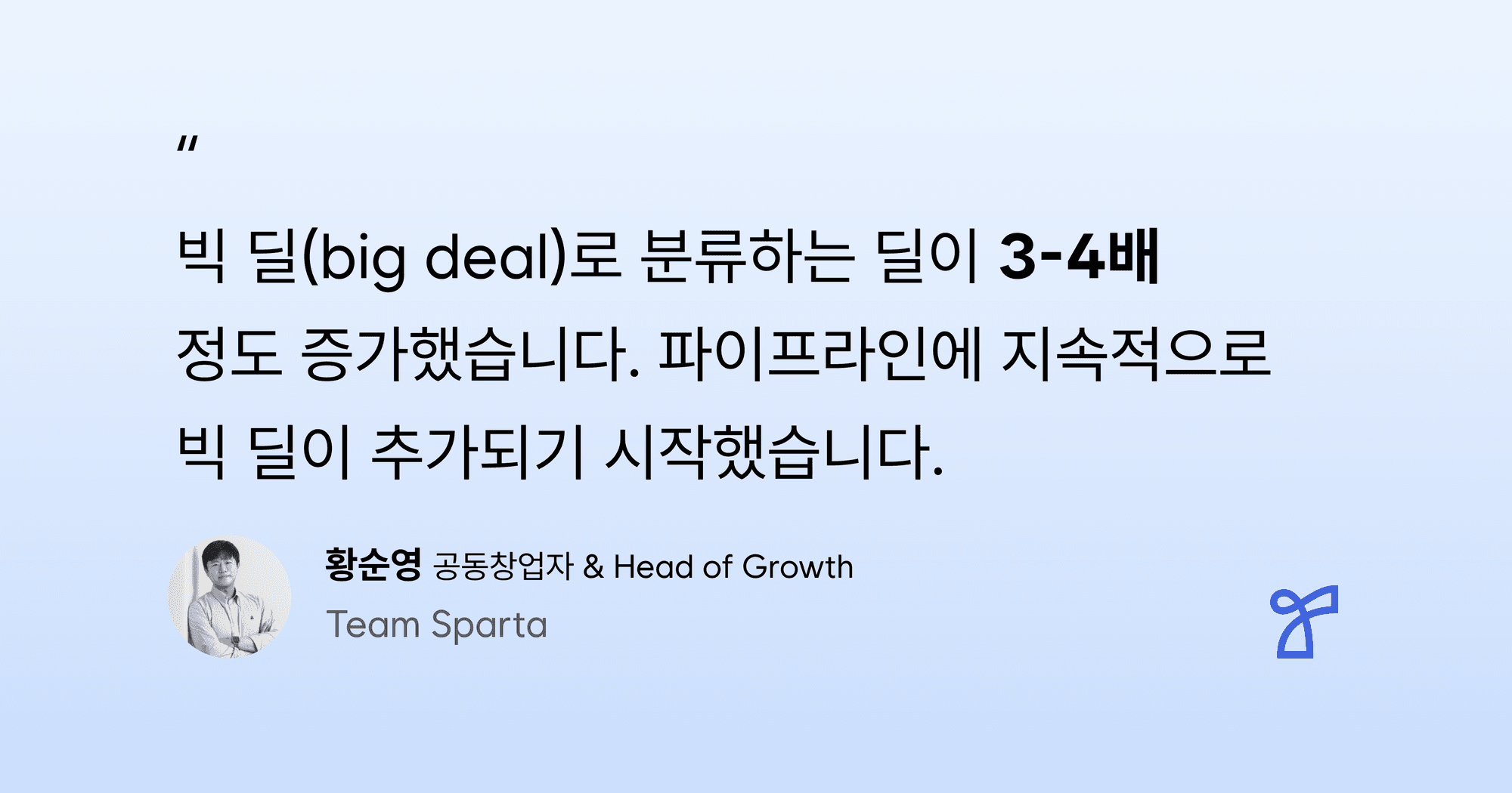 (구체적인 수치는 공유하기 어렵지만) 내부 기준으로 빅 딜(big deal)로 분류하는 딜이 월 단위로 3-4배 정도 증가했습니다. 파이프라인에 지속적으로 빅 딜이 추가되기 시작했습니다.